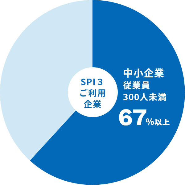大企業向けの適性検査と思われがちなSPI3ですが、ご利用企業の約67%が中小企業です。