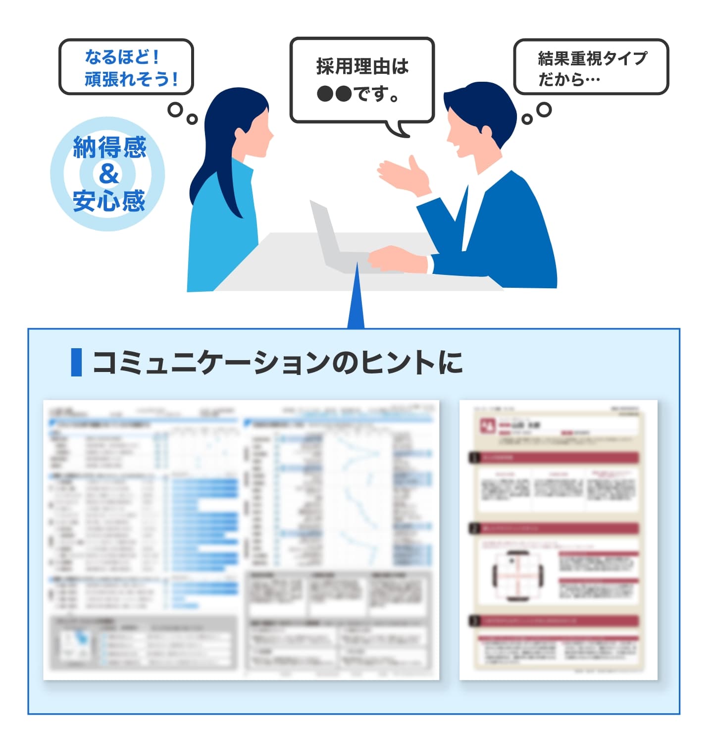 内定通知後も人事の仕事は終わりません。内定者が納得感や安心感を持って入社できるように、フォローすることが重要です。適性検査を用いると、一人ひとりの性格に合わせたコミュニケーション方法がわかるので、内定者に採用理由や入社後の期待を伝える際に役立ちます。また、同期間の親睦を深める内定者イベントの企画やグルーピングの参考にもなります。