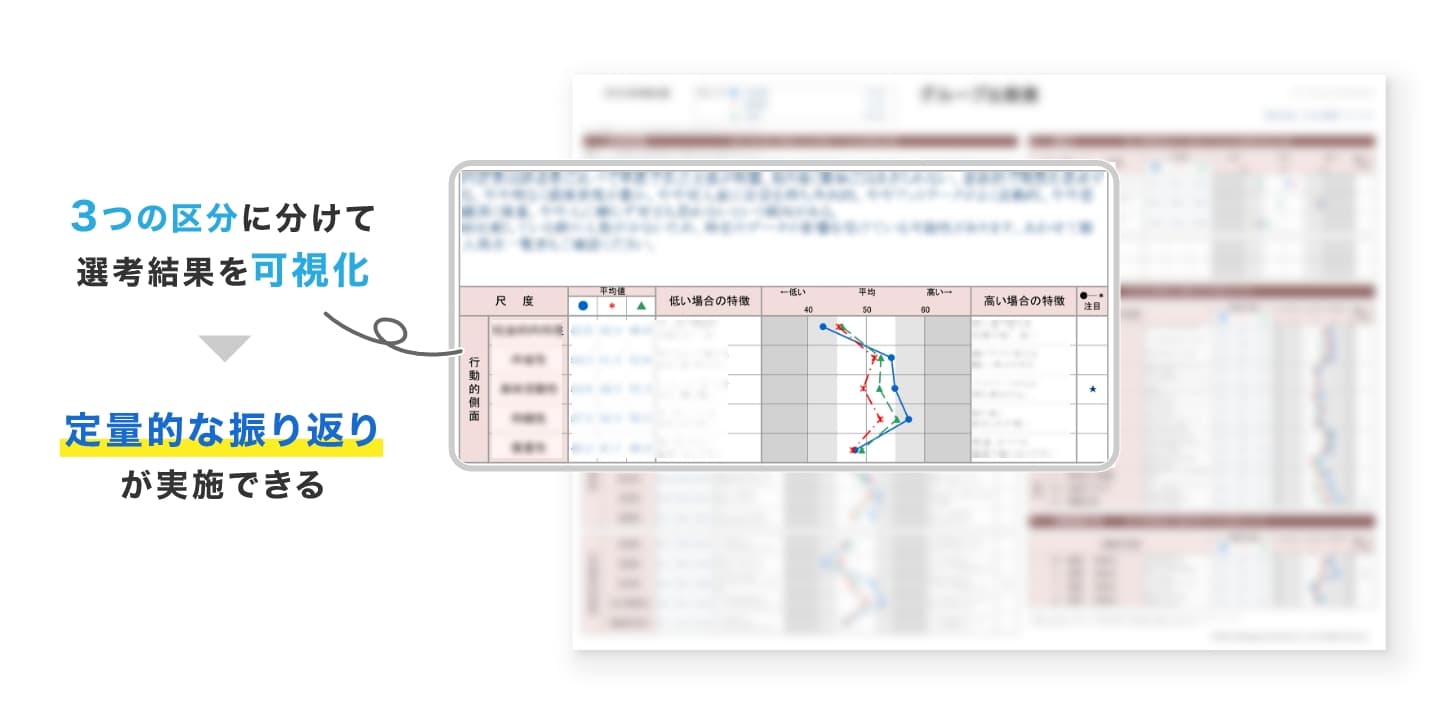 選考の各段階ごとに、質と量の観点から振り返りができる