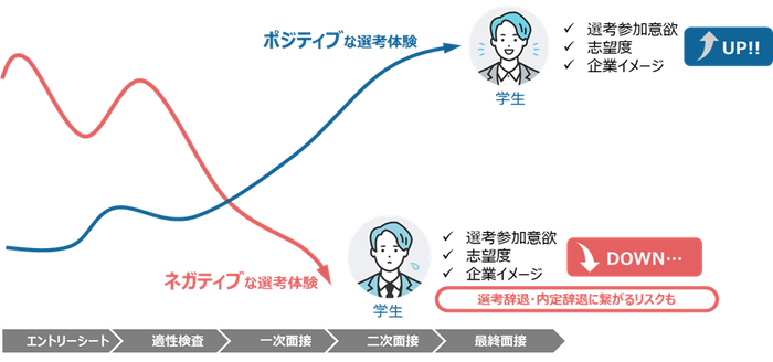 学生は複数企業の選考を並行して進めているため、自社に対する選考参加意欲を高めることは非常に重要な課題です。また、採用活動のゴールは入社ではなく、入社後の定着・活躍です。そのためには学生が入社に対して納得感を持てるよう採用活動段階でのコミュニケーションを工夫する必要があります。