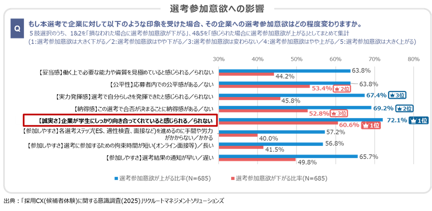 ・選考参加意欲に最も影響するのは「誠実さ」